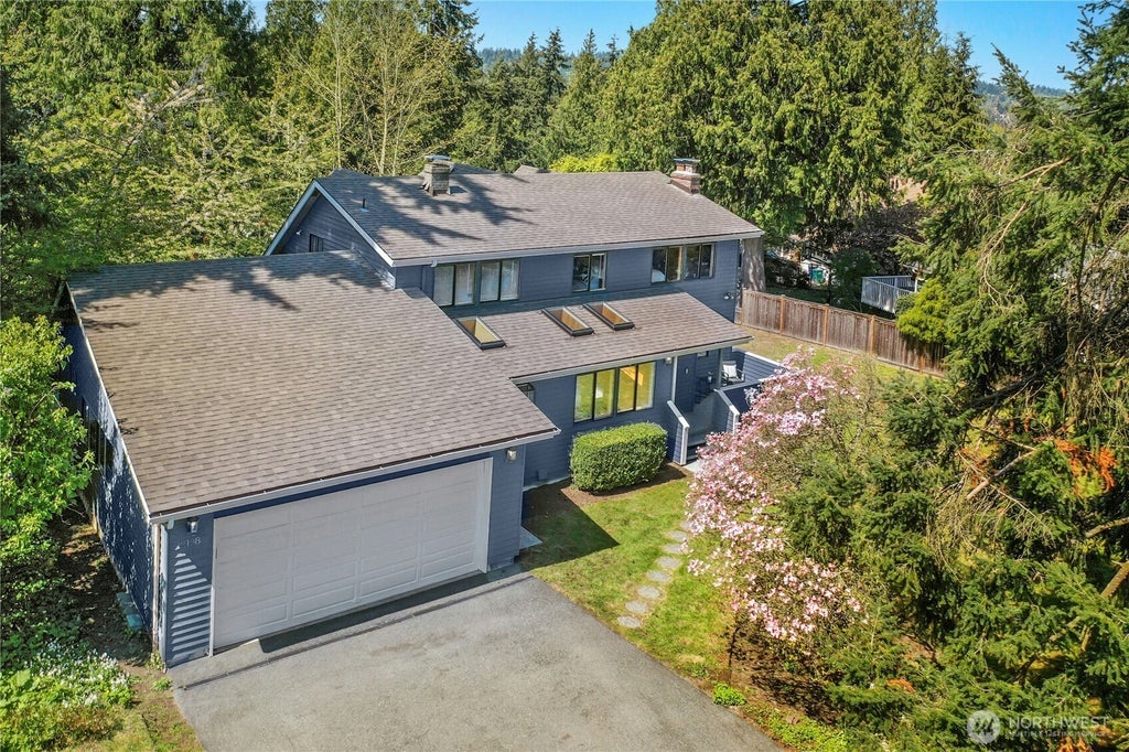 Tucked back from the street with a private, sun-filled feel, this charming home features hardwood floors, exposed beams & a welcoming layout. Spacious living room w/wood-burning fireplace flows into the dining area & custom oak-cabinet kitchen. The versatile 2,300 finished sq ft floorplan offers flexible bedroom, WFH & hobby spaces. An unfinished 960 sq ft basement adds room to grow—use it as-is, finish it for extra living space, or explore rental potential. Multiple decks for enjoying morning sun & sunset skies + a low-maintenance yard w/mature landscaping. Excellent location - close to 405, charming DT Juanita & Kirkland, & Villages @ Totem Lake. Tons of potential—personalize, expand, or enhance! All in a highly desirable school district.