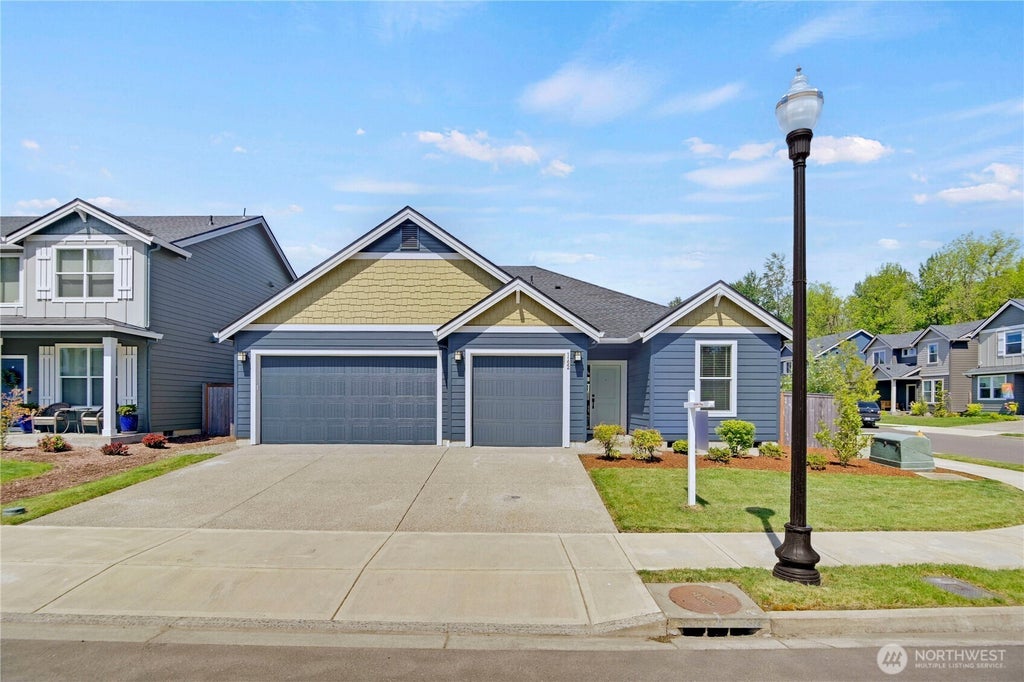 BIG Price Improvement!!! $15,000! Gorgeous 2021 built 4 bedroom, 2.5 bath SINGLE LEVEL home with tall ceilings and luxury finishes throughout in a great neighborhood that features a playground and walking trails, and is only moments away from Battle Ground Lake and other recreational areas. LARGE, FENCED, CORNER LOT!! The home welcomes you with high ceiling, loads of natural light and wide entry way with LVP flooring throughout the main living areas. The Gourmet kitchen features quartz countertops, stainless steel appliances, gas range, and walk-in pantry. The primary bedroom features coffered ceilings, a spa like bathroom and huge walk in closet. Oversized 3 car garage, front and back yard with irrigation, fully fenced.