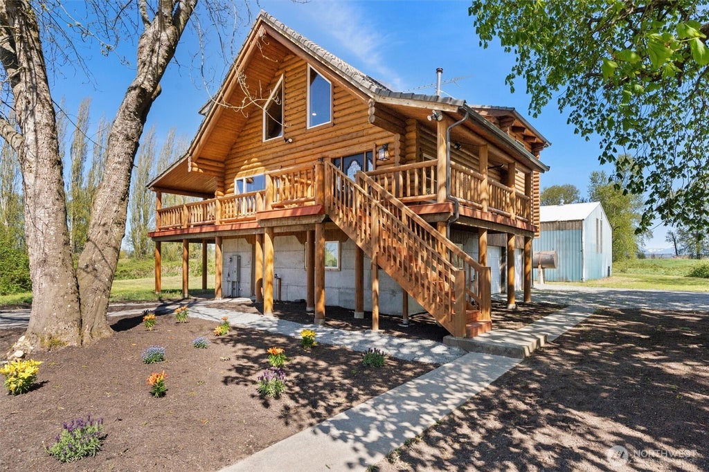 Discover the perfect blend of comfort, natural beauty & privacy in this rare turnkey featuring over 300K in 2025 updates. Sun-drenched rooms, vaulted ceilings, Kitchen w/SS appliances & Quartz counters, fresh paint & refurb pegged hardwoods create an inviting atmosphere. Main floor flex/bedroom w/laundry access via Hollywood bathroom design. Upstairs, enjoy loft, 2bdr & ensuite w/private balcony. Relax on the 600sf wrap-around deck w/panoramic views. High-efficiency hydronic heat ensures year-round comfort. Attached 1260sf drive-thru garage/shop & 1500sf structure for endless potential. Enjoy a bit of historical charm w/a 1892 Chestnut +Apple trees. Slough irrigation is ideal for gardening, farming & wildlife. Picturesque year-round living!