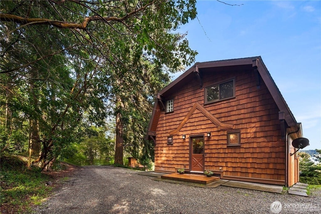 A gorgeous NW contemporary home with 3 levels of living space open to the sunlight plus views of Tramp Harbor & Mt. Rainier. A pristine home with a multitude of amenities including: maple floors, radiant heated tile flooring, a master suite with walk-in closet, private 3/4 bath & private lanai, granite counters in the kitchen, south facing windows from basement up to third floor, a south facing deck on the main level, fruit trees, a playhouse & a custom sand box. Near schools, beaches & shops.