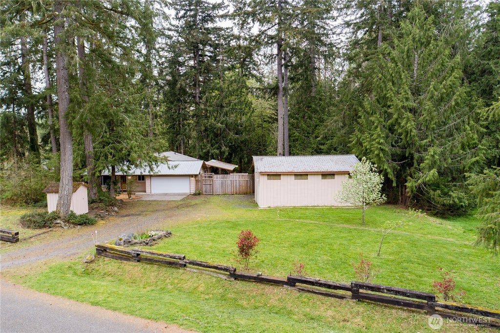 Amazing opportunity right off Hwy 101! This beautifully updated 3-bed, 2-bath home sits on a spacious .55-acre lot backing up to a greenbelt for added privacy. Features include a large 20x30 shop with 220V power and subpanel, a private well with a new tank, filter, and softener. NO HOA restrictions. Enjoy a heat pump, RV parking w/carport, covered back deck with 50-amp hookup, propane and pellet stoves, a new garage door, double oven, green house and a security system. Thoughtful upgrades throughout the 1,576 sqft interior make this home move-in ready. Don't miss this rare find!
