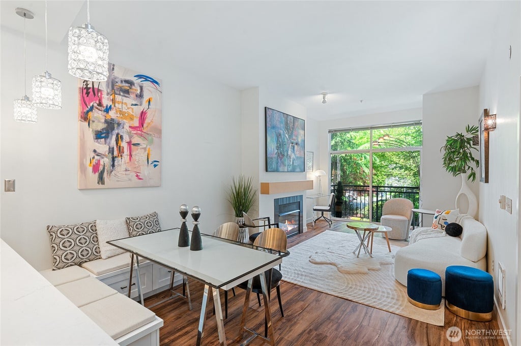PRICE IMPROVEMENT. Live the vibrant urban lifestyle. Nestled in the heart of downtown Kirkland, SOHO, easy access to the waterfront, dining, nightlife, shopping, trails, & Google campuses.Contemporary 1-bedroom home, fireplace, open floor plan, space for desk/den. Kitchen features new quartz countertops, new appliances, perfect for entertaining.New flooring and custom lighting. Well-managed HOA is pet-friendly, has no rental cap, and allows short-term rentals.Secure parking, A/C unit to covey. Google campus a few blocks, good access to 405 & Eastside tech hubs.This condo offers affordable luxury, fantastic location.