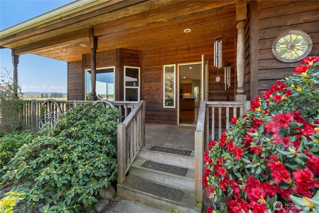 Tucked at the end of a quiet dead-end road find breathtaking Mt. Rainier views from this stunning one-level home nestled on shy 3 level acres. Enjoy panoramic, unobstructed views from your expansive deck—perfect for entertaining or unwinding in your private hot tub. Vaulted ceilings, skylights, & gleaming hardwood floors throughout create an airy, light-filled living space. Open kitchen features granite counters, an island with eat bar, ideal for gathering & cooking alike. Eco-conscious buyers will love the solar panels & EV charger, keeping living costs low. This peaceful retreat is a gardener's paradise! Cute garden shed w/small green house offers tool storage & room for those DIY projects. Covered RV Parking & NO HOA's! Too much to list!