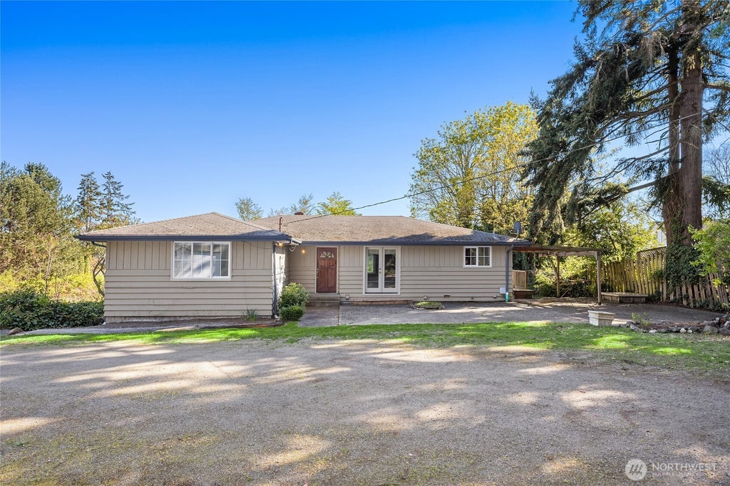Opportunity knocks! Fantastic Winslow property with excellent development potential, tucked down a quite lane on a sunny, nearly level (gentle slope north to south) shy half acre. The duplex home includes a two-bedroom unit on the main floor and one-bedroom unit with separate entry on the lower level. A detached garage has two bays and additional enclosed storage. Just down the street a neighborhood park, and a few blocks from restaurants, movie theater and bustling downtown Winslow. With R-4.3 zoning, a 0.46-acre lot and an adjoining property also available for purchase (see MLS#2366514), this is a rare chance to create a new small development in town. Zoning Summary and Concept Site Plan available.