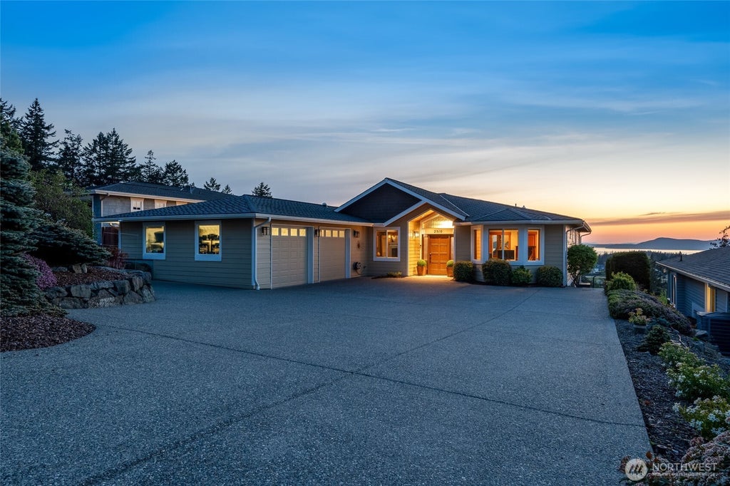 A rare offering in Rock Ridge. This exquisite custom home captures commanding views of the Rosario Straight, vibrant boating activity, and dramatic sunsets. The San Juan Islands are beautifully showcased in every direction, offering an unforgettable backdrop. Main-level living features a chef’s kitchen, private office, guest suite, and a grand owners’ retreat with a relaxing spa bath. A covered deck on the main level with built-in gas grill invites seamless indoor-outdoor living. Sophisticated interiors with exceptional materials and exquisite craftsmanship throughout. The lower level offers two en suite bedrooms, a 10-seat theater with projector and screen, and a custom patio with hot tub. An extraordinary setting and an exceptional home.