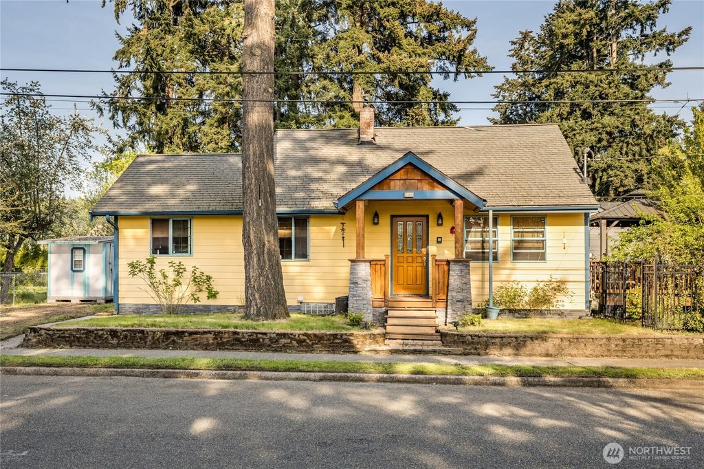 This classic downtown Auburn home on a corner lot offers charm and character in every detail. Warm hardwood floors span the main level while arched doorways add unique personality. The generous kitchen features a convenient breakfast bar and plenty of cabinetry. The living room is bright & welcoming with French doors that lead to a covered back deck, perfect for relaxing or entertaining. Full bath & 2 bedrooms on the main floor; upstairs provides a versatile area to serve as a third bedroom, playroom, craft room, etc. With a roomy basement for extra storage and a tranquil, fully-fenced back yard filled with flowering shrubs and fruit trees, this home has great appeal. Plus the location is unbeatable, close to schools, shopping, and transit!