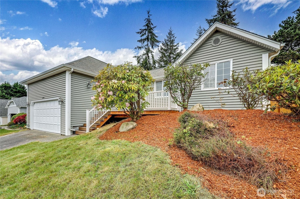 One level living in the heart of Silverdale's convenient Ridgetop neighborhood! 3 bedrooms 2 baths with easy care vinyl siding. Greatroom with vaulted ceiling creates a spacious setting, or cozy it up with the gas fireplace! Primary ensuite features more vaulted ceilings, a double vanity & walk-in closet. Dining area with french doors out to the back patio. Fresh interior paint. This blank canvas is ready for your customization! Moments to Silverdale retail, medical & CK Schools!