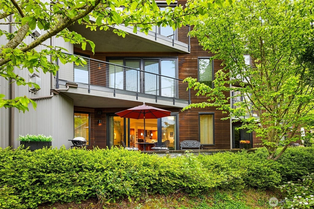 The stunning condo you have been looking for! Situated in the beautiful Vineyard Community, this one level home overlooks the central gardens and pond with a very private feel. The home centers around the gorgeous greatroom which is full of natural light from all the south facing windows, and opens onto the exclusive patio. Exceptional craftmanship is showcased throughout the condo with vertical grain Fir trim and beautiful cabintry. No stairs to this unit - an elevator brings you up from the garage, where you have a designated parking spot. Radiant heat warms the home. Tankless water heater. Besides the gorgeous gardens, there are trails surrounding the community, and a paved sidewalk to the ferry and downtown Winslow. Fabulous location!
