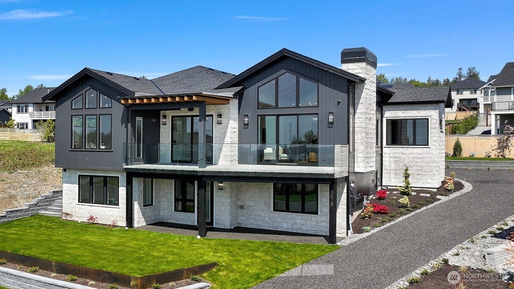 Discover the pinnacle of new construction with this Scandinavian modern home, rich in meticulous details. As you arrive, the feature-sealed driveway leads you to a welcoming entryway with an open concept floor plan and abundant windows capturing stunning bay and islands views. The home boasts impressive vaulted wood panel ceilings, complemented by designer lighting throughout. The kitchen features panel-ready appliances, and a striking hood vent that harmonizes with the fireplace. The primary suite is complete with a designer walk in closet and ensuite. The lower level flex space is equipped with a wet bar and electric fireplace. This new construction home stands unrivaled, offering an unparalleled blend of luxury and modern design.