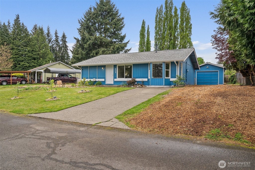 Have you ever wanted to own a homestead in the heart of Lacey? This 2 bed/2 bath home offers just that. Step outside & enjoy the fruits of the land—literally! The property boasts apple & pear trees, strawberries, marionberries, elderberries & plenty of garden space. Raise chickens in the coop or relax by the fire pit. Inside features an upgraded kitchen w/ granite counters, SS appliances & gas range, plus new laminate hardwood floors & large windows that fill the space w/ natural light. The primary features a full en-suite. A detached garage & DADU-style building offer space for a home office, gym or guest quarters. With no HOA & RV parking this hidden gem is one-of-a-kind and perfectly located for easy access to shopping, I-5 & JBLM.
