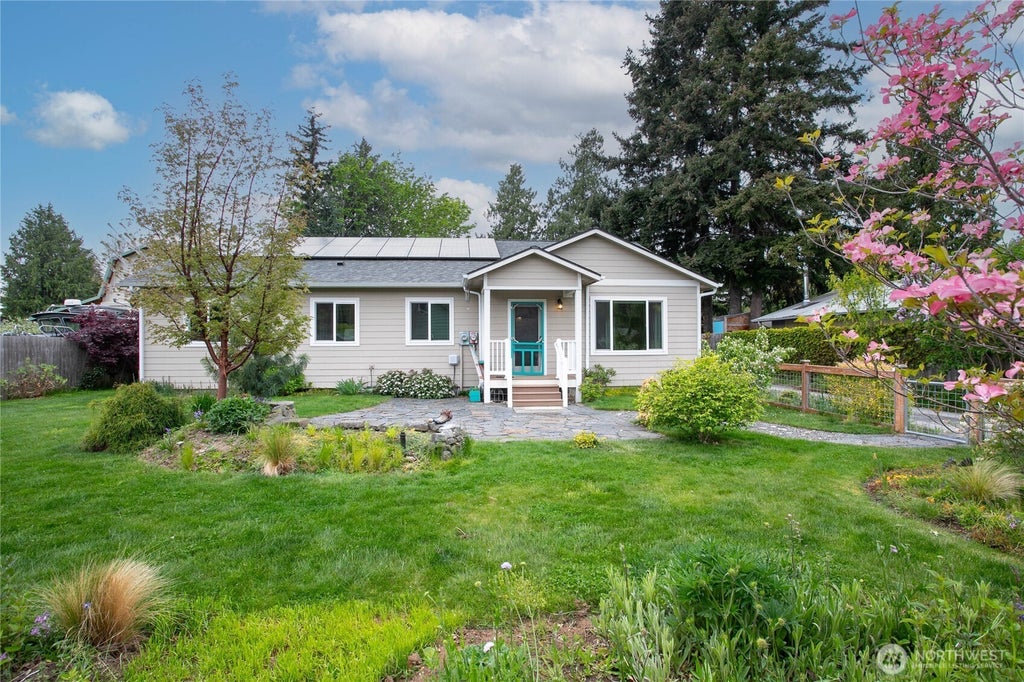 Tucked away at the edge of the Columbia Neighborhood is this rare gem. A massive 1/3 acre property with fully-fenced yard, enormous detached "garage", and charming newer 1-story home. Boasts a 9.4 MW solar panel system, automated irrigation system, acacia engineered hardwood floors, stainless steel appliances, and central A/C, too. Soaring vaulted ceilings in the kitchen, dining area and living room create an open-concept entertainer's dream. Flow out to the hardscaped front patio or onto the back patio and yard. Attached garage plus an unforgettable detached flex space with 1/2 bathroom. Second garage? Shop? Gym? Home office? All of the above. A beautifully landscaped and serene setting with an abundance of parking. Don't miss this one!