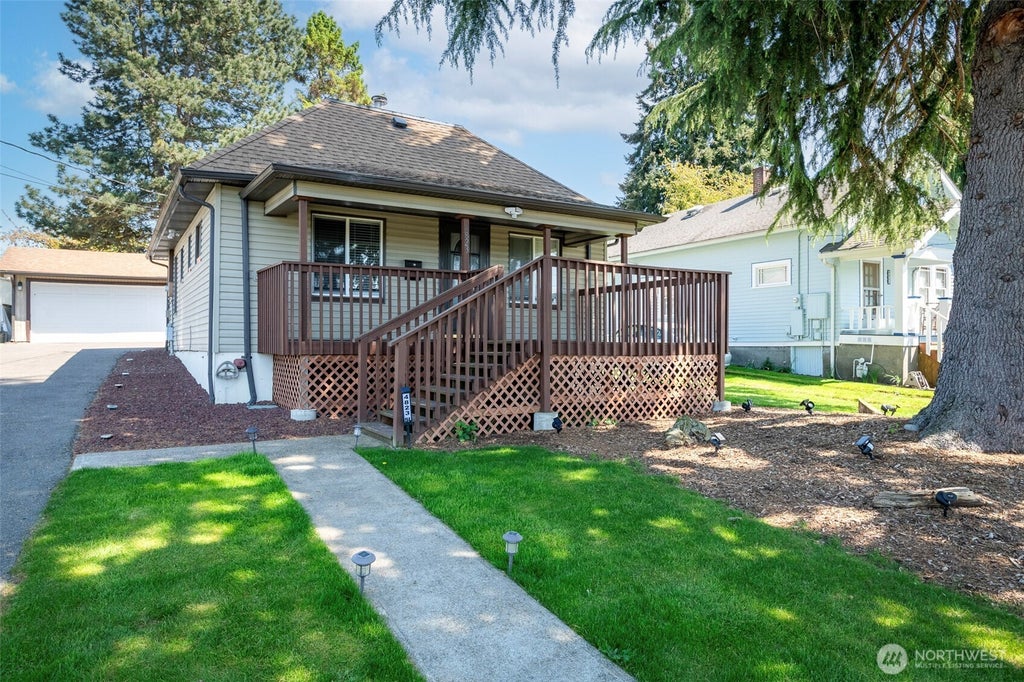 Charming Updated Bungalow in South Tacoma! This move-in-ready gem features a cozy living room with a wood-burning fireplace, a stylish updated kitchen, and durable LVP hardwood floors. Enjoy year-round comfort with newer fixtures, roof, and an insulated 2-car garage with shop space. Relax on the covered front porch or in the partially fenced backyard with low-maintenance landscaping and sprinklers. Includes mudroom with washer/dryer. Prime location near I-5, JBLM, Tacoma Mall & transit. Welcome home!