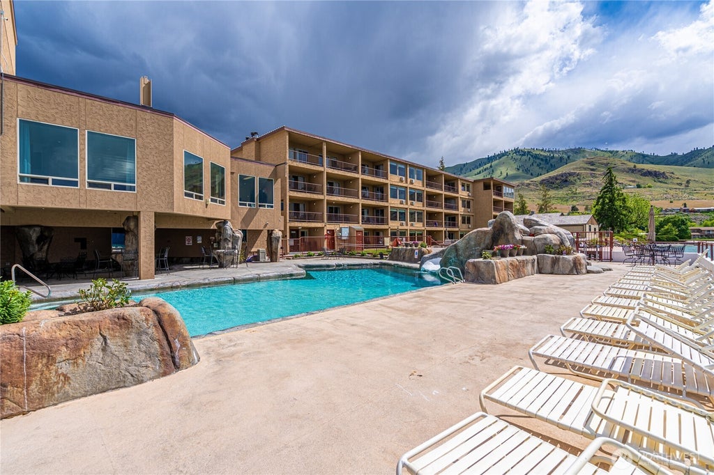 Welcome to this recently updated and extra spacious Grandview with the coveted up lake view of Lake Chelan. As one of the largest 2 bedroom units in the complex, you'll enjoy generous living space and a comfortable layout. With a strong vacation rental history and future bookings already in place, this property is a proven investment opportunity and sold fully furnished. Just a one-block walk to downtown Chelan for restaurants, shopping and wineries! Located on the lobby level, this spacious unit provides easy, no-stairs access, making it ideal for all guests. Enjoy the serene surroundings of Lake Chelan, whether you're looking to unwind or capitalize on the growing vacation rental market. Don’t miss out on this exceptional gem!