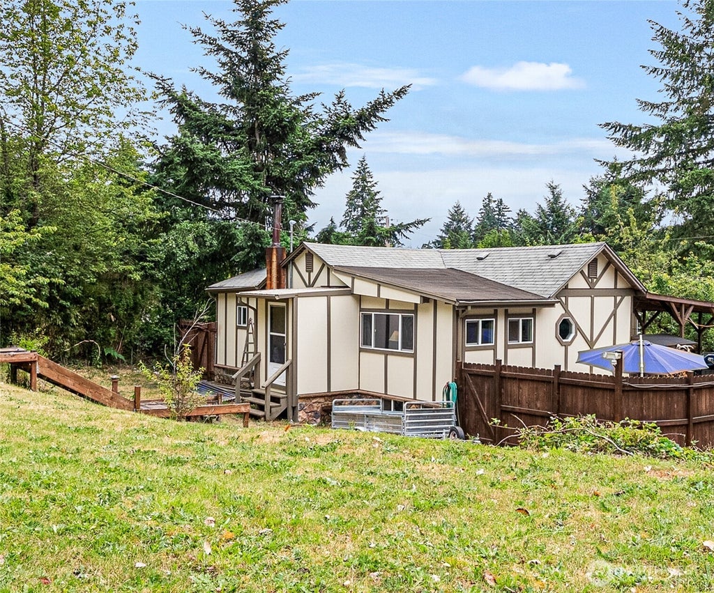 Nestled near the Illahee Preserve, this daylight rambler on a large corner lot offers 3 bedrooms and 2 baths. Newer wood plank flooring throughout for easy care, newer double pane windows, spacious modern kitchen with new sink, and a living room warmed by a wood burning free standing fireplace. Newly remodeled full bath upstairs. Separate entrance daylight basement offers a third bdrm, 3/4 bath and workbench/office area for your favorite hobbies. Enjoy the huge covered deck in the fully fenced backyard for endless summer entertaining and privacy. Separate shop is wired for 30 amps. Plenty of space for RV or boat storage, or add an ADU to rent out. Nature Preserve for hiking, Rolling Hills Golf Club, full shopping and Navy Base nearby.