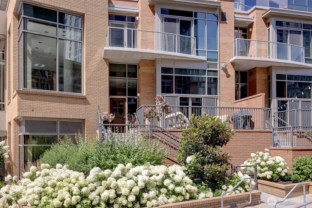 Elevated living in this remodeled Downtown Bellevue townhome with elevator! Recent updates include quartz countertops/backsplash, refinished premium cabinetry, new linear gas fireplace and tile wall & new heat pump. Primary bath remodeled with new tile, shower & quartz counters. Primary closet upgraded with TV mirror, new wood floors + custom built-in's. New modern chandeliers/sconces. Spacious great room with high ceilings + automated shades lead to private, sunny patio. Oversized private 2-car garage + expansive storage & "secret" closet. Concrete and steel construction. Access to 24 hour concierge, owner’s lounge, gym, locker rooms & spa! Walk to world-class shopping, restaurants, Amazon, waterfront park, and all the best of Bellevue.
