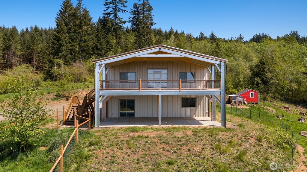 One of the most distinctive properties on the market, this 2,400 sq ft, 3 bed, 2.5 bath luxury "Barndominium" sits on just under 8 acres with panoramic views of the Coastal Range by day and Portland city lights by night. The stars from here are epic. Built with a full steel frame and no expense spared, it features custom cabinetry, granite countertops, hammered copper sink, blue pine ceilings, and a private sauna in the primary suite. Interior walls are non-structural for future flexibility. Massive covered outdoor space with cedar decking, propane/electric hookups, and top-tier systems. Finished wolf tiny home offers guest or multigenerational living. Extras include- 1600 sqft of covered outdoor space and 1200 sqft of shop/garage space.
