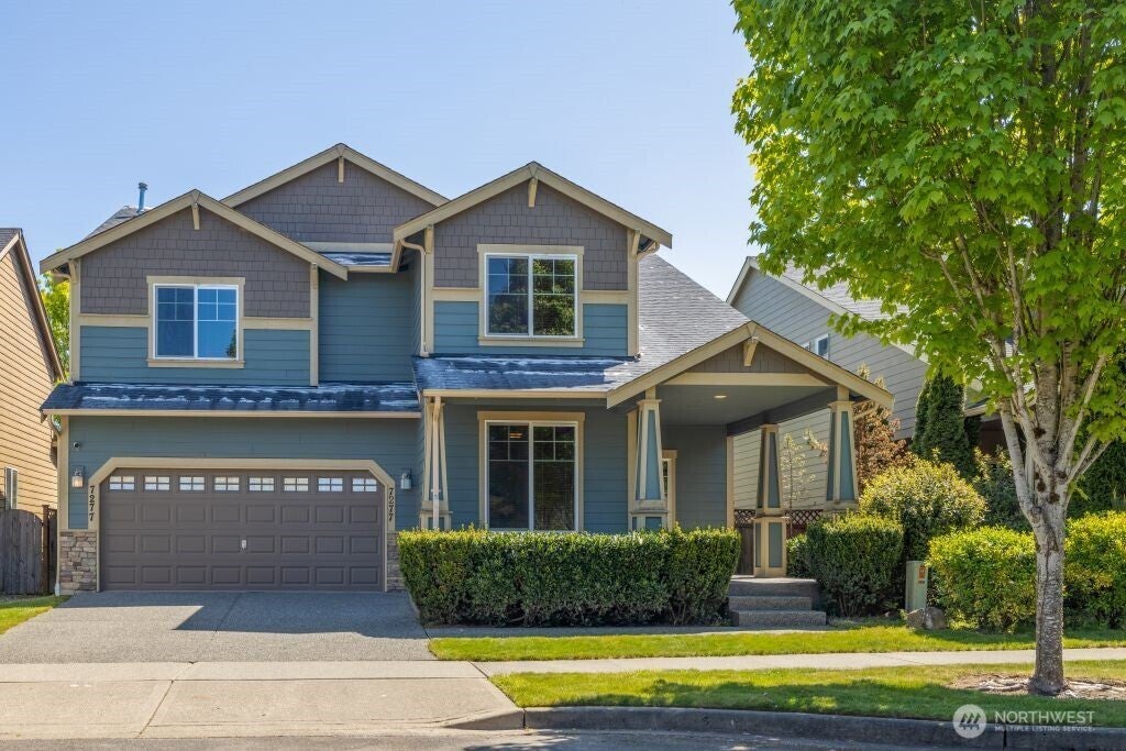 The Mountain is Out! Come and see from the spacious primary! Large two-story home features den/office with closet on main floor, living room with gas log fireplace, and updated kitchen featuring tile island, rich brown cabinetry, and newer stainless appliances. Upstairs, primary's ensuite bath features double sinks, tub, and separate shower. Large utility room up as well as three additional bedrooms and large main bath. Access the fully fenced backyard from dining area through lovely french doors to covered patio featuring hot tub and sweet flowering cherry tree. Generator included. Conveniently located in Horizon Pointe near elementary school, arterials, grocery stores, and Amtrack station.