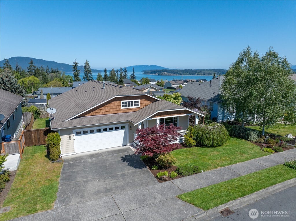 This light-filled home offers an open floor plan with a spacious front living room and hardwood floors throughout. The kitchen includes a breakfast bar and opens to a second living space, creating great flow for daily living or entertaining. French doors in the dining area lead to the back deck for seamless indoor-outdoor living. The primary suite features a walk-in closet and standing shower, while both spare bedrooms also offer walk-in closets. A large two-car garage includes an extra fridge, and the landscaped backyard features a storage shed and deck—perfect for taking in stunning views of Rosario Strait, Guemes and Cypress Islands, and the Bellingham and Guemes Channels.