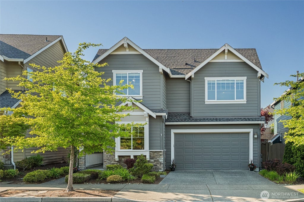 You are going to love this 5 bedroom Eagle Point SE facing home with stunning Mt. Rainier views and walking distance to Jeanne Hansen Community Park and Timber Ridge. Popular floor plan with 4 bedrooms, 2 baths, laundry room, and big bonus room up, and main floor guest suite/office combo which includes Murphy bed, built-in desk, and closet, and a 3/4 bathroom on the main floor. Highlights include hardwood flooring, gas fireplace, vaulted ceilings, new carpet and interior paint, California Closet built-ins, newer appliances (all included), extra storage space, and more. The backyard is low maintenance and fully fenced with patio plumbed for hot tub, fruit trees, garden, beautiful year-round color, and ideal sun exposure. This place is it!