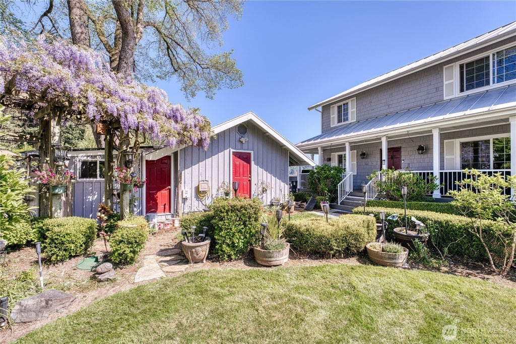 Waterfront Living at its best. Custom home with 75 ft. of waterfront, RV covering, several storage buildings, and a garden area. Trees just limbed up. Freshly painted outside. This home boasts a massive main floor with a modern kitchen and a custom Range hood. Cozy fireplace insert and large showcase windows give every window an unobstructed water view—bonus room & Wine Cellar & large Utility room with full-size Refrigerator and newer Washer/Dryer. Extra-wide carpeted stairs lead you to a massive Master Bedroom that can be divided for extra guests. Two additional good-sized bedrooms with huge walk-in closet. Both Full Bathrooms are immaculate. The finished loft area upstairs has stairs leading outside—lots of Custom woodwork in this home.