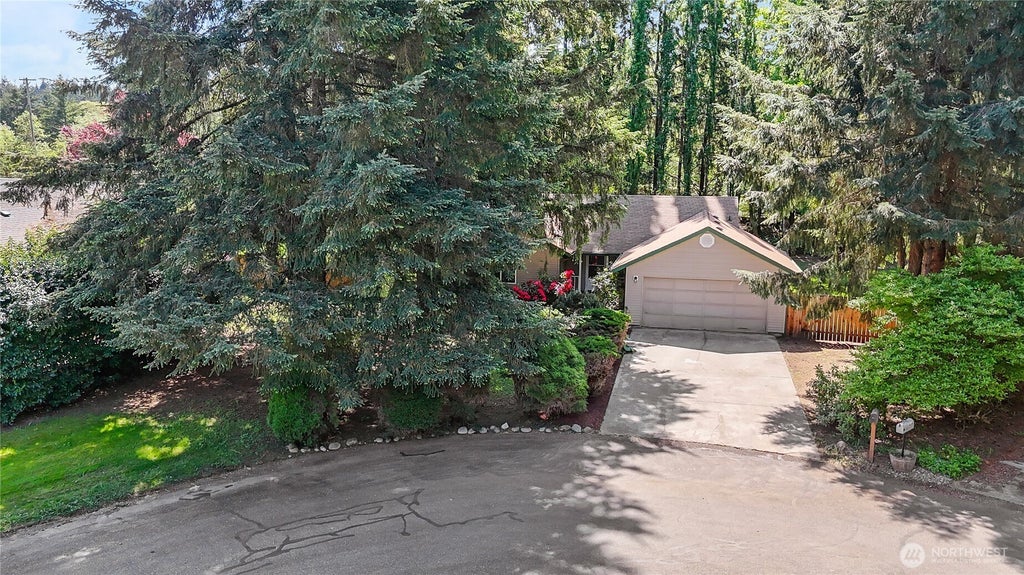 Enjoy the majestic feel of living amongst the trees with everything still at your fingertips. The perfect starter home (or expand your investment portfolio!): three bedroom rambler, tucked away at the end of a cul-de-sac in a well-established neighborhood, close to I-5, Costco, & tons of shopping in Hawks Prairie. Soaring vaulted ceilings w/ skylights welcome you inside. Plenty of cabinetry in the Kitchen w/ tiled floor - all appliances included. Another skylight features in the private Primary bathroom w/ walk-in shower. Sitting on over quarter of an acre, an enormous lot for being in town! Fully fenced with plenty of room to stretch out & play. Just around the corner from Long Lake & minutes to RedWind Casino. Easy commute to JBLM.