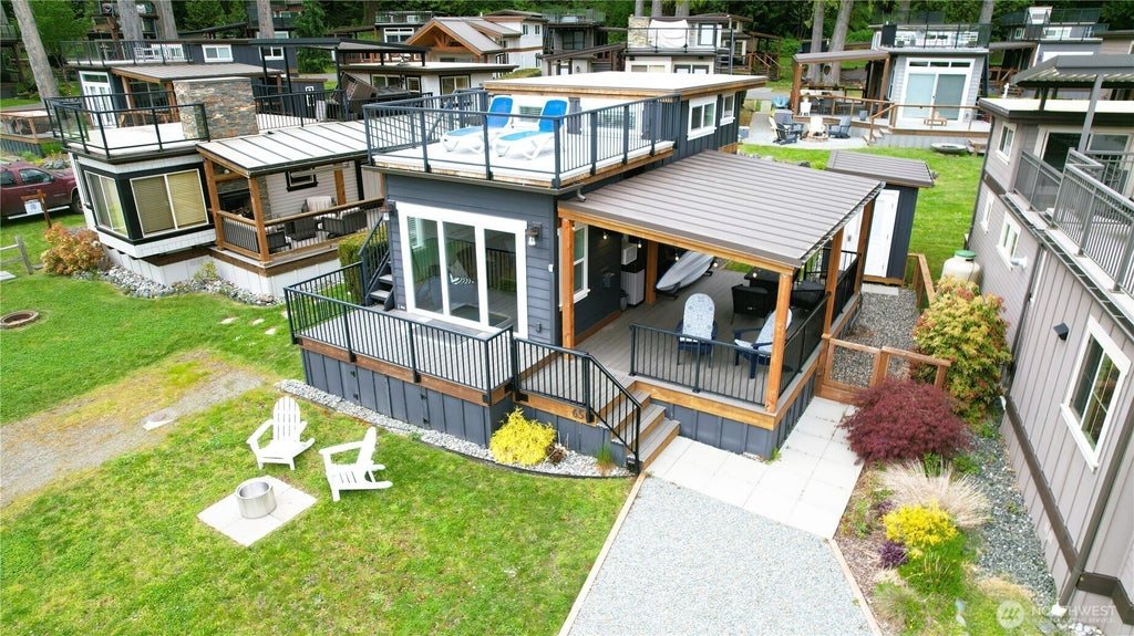 PLAY AT THE LAKE. This thoughtfully designed cottage features incredible views and an open layout and is your hub to play on Lake Whatcom. Enjoy an upper deck perfect for relaxing or entertaining and a two-room loft offering flexible sleeping or storage space. Unobstructed lake views and a quick walk to float or paddle. Located within a gated vacation home community rich with amenities, enjoy direct lake access, a private marina, pool, hot tub, clubhouse, pickle ball, and scenic nature trails. Whether you're kayaking at sunrise or gathering around the firepit at sunset, this cottage is designed for creating lasting memories together. See you at the lake!