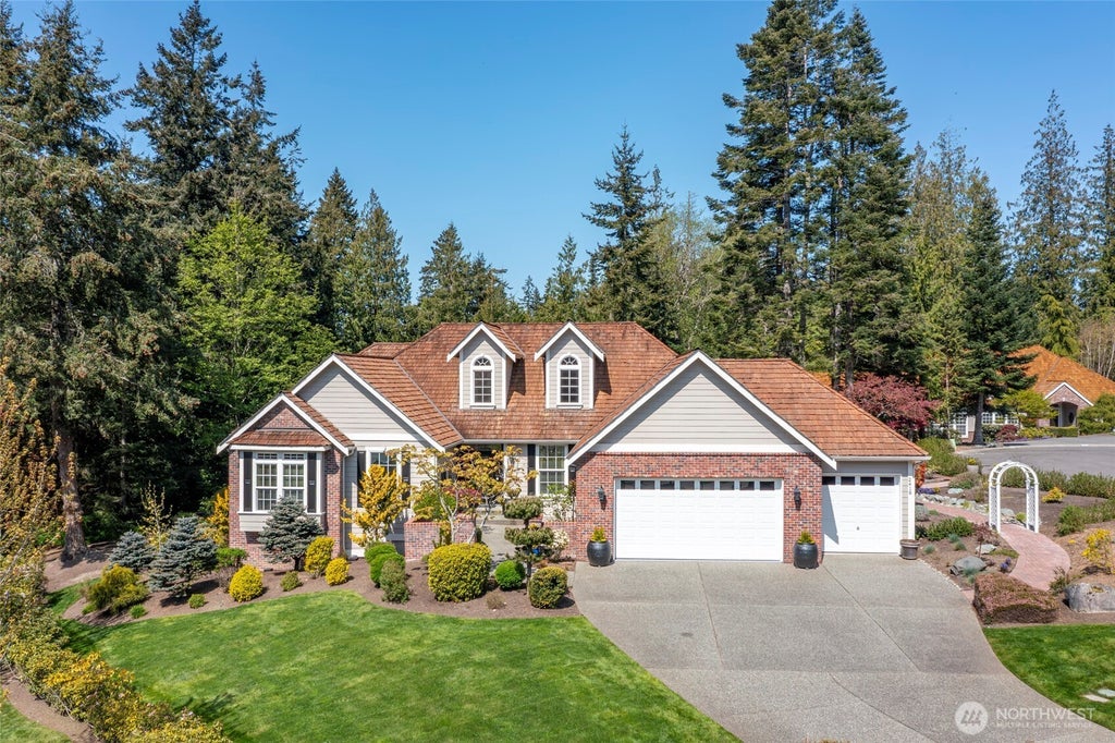 Elegant one level home on a large lushly landscaped corner lot in the coveted Parkside neighborhood! This beautiful well-appointed home offers hardwood floors, crown molding, formal living room w/ soaring vaulted ceilings, sunlit formal dining room, & a dual sided fireplace adjoining the spacious family room & formal living room. The gourmet kitchen features granite counters, double oven, butler's pantry, & island w/ eating bar. Luxurious primary suite w/ cozy gas fireplace, private deck, jetted tub, dual vanity & tiled shower. Spacious office with built in shelves & 2 generous sized guest bedrooms. Enjoy entertaining on your back deck overlooking the beautiful park-like yard. New 50-year composition roof to be installed before closing!!!
