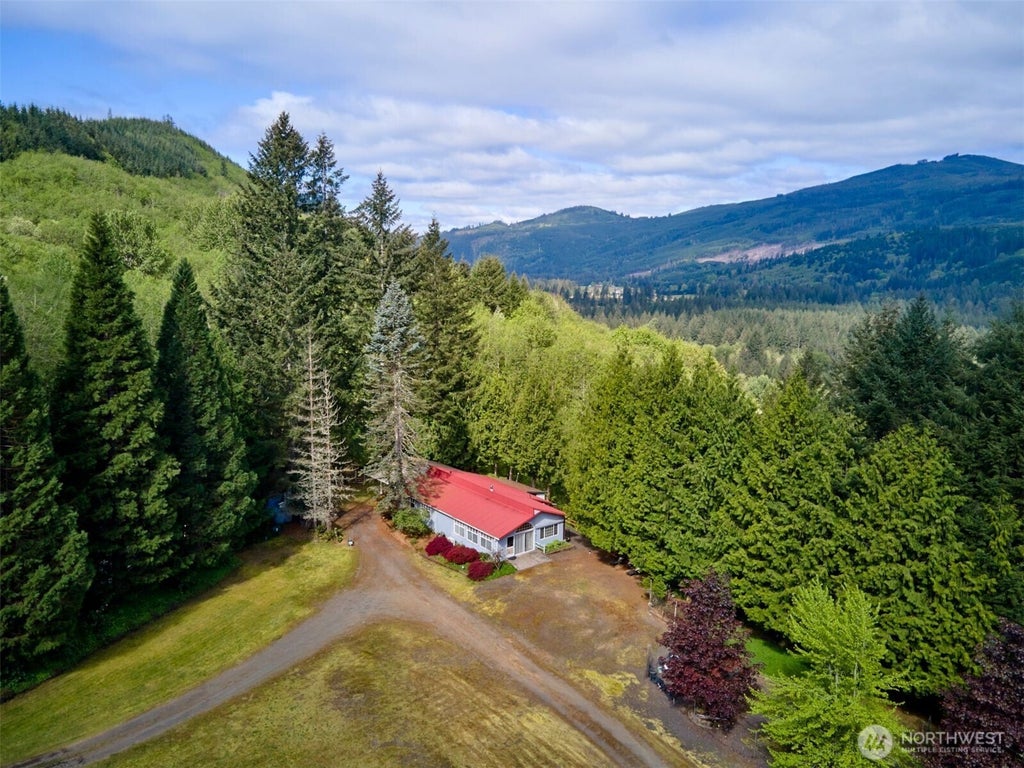 Manufactured Home that has been added onto. Beautiful views of the mountains. Walk trails or cozy up to the fireplace while gazing out at the mountainside. Wide entry into a large living area/office. One full bedroom on the main then take a step down from utility area to a second bedroom and extra bathroom with shower with its own entrance from the slider doors. Main bedroom is a suite with tub/shower. Plenty of storage closets/shelves and if you like to showcase books or trinkets from your travels you have plenty of them to use. Hidden gem of a bedroom outside that you can heat underneath with wood in the Winter. Garden area already sprouting and flowers are starting to bloom. You have never seen anything like this one most likely.