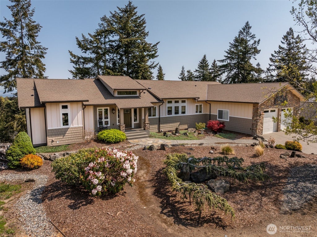 Water views in one direction & mountains in the other from this stunning home in Woodland Heights. Main living is on the Primary floor with spacious living room w/vaulted ceiling, skylights, maple floors & a gorgeous stone fireplace. Granite island w/bar seating, prop. stove, new frig and views of the Olympic Mountains. Primary BR w/doors to private Trex deck w/water views, plus an office nook off kitchen, Cozy den/media room w/fireplace plus another room that has been used as a craft room w/French door to the deck w/water views. Lovely private back deck w/high end hot tub & views to the Strait of Juan de Fuca. Beautiful wrought iron staircase down to daylight basement w/two more BRs, bath & family room w/door to fenced in back yard area.