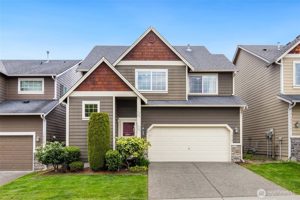 This move-in ready home features hardwood floors, brand new carpet, Milgard windows + quality finishes throughout. The open kitchen provides quartz counters, stainless steel appliances, a tile backsplash, an island with an eating bar, + a good sized pantry. The spacious living room offers a gas fireplace for those cozy winter nights. The dining room leads to a low-maintenance backyard with patio + hot tub. The primary bedroom features a private en-suite bath with a walk-in closet & dual sinks. For convenience, there is an upstairs laundry room + a "tech nook" with a built-in desk. The location offers easy access to I-405, as well as nearby shopping, dining, schools, and parks. Deep Cleaned! Pre-Inspected! Northshore School District.
