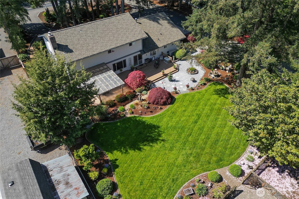 Welcome to your private sanctuary nestled in an park like oasis of natural beauty, a gardener’s paradise. This exquisite 2596 sqft 4 bdrms 2.25 baths home offers a Chef's Kitchen with Beautiful Oak Cabinetry, Granite Countertops, and Garden window. Primary bdrm with walk-in closet and bath. Generous bdrms, Formal-living rm, and Professional office space. Family rm with gas fireplace & wet bar that leads to a covered patio with an spacious trekdeck for your entertaining. Your dream shop featuring 2200 total sqft, 1200 sqft insulated w/heat and 1/2 bth. 10 ft ceiling, 8x12 electric door. 1000 sqft 2 electric drive through doors 14x12 16 ft ceiling, 200 amp on it's own meter. Amenities include A/C, sprinkler system, play area. New 2020 roof
