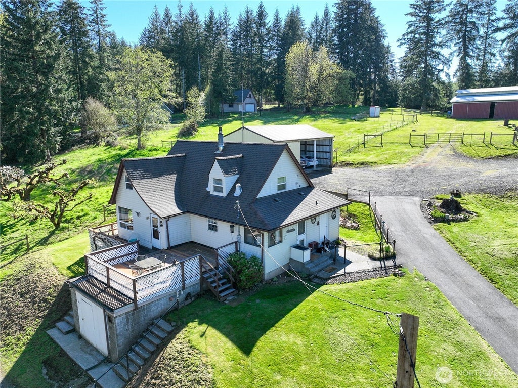 The Magical Life on a Real Functioning Farm with Mount Rainier and Silver Lake Views! Live the dream life in this meticulously kept farm home boasting 1,372 SF, 4 bdrm, 2 bthrm, living rm w/pellet stove, country kitchen w/breakfast nook, laundry/mud rm, primary bdrm & 2nd bdrm on main & 2 bdrms on upper floor, large viewing deck, a basement 1 car garage and a newer architectural roof. The grounds feature fenced pastures, 2 shop/garage/carports totaling 1,728 SF, large barn w/stalls and a wind shelter/lean-to, chicken coop, fenced orchard/fruit trees/garden space, black top driveway, 6 gorgeous acres w/Fir & Maple trees and a creek flowing at the back of the property! This farm home is a MUST SEE!