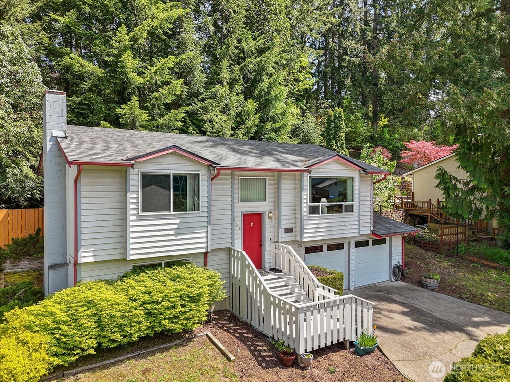 Opportunity knocks! Come check out this home in Bonney Lake for under 500K! Just a few touches to make it your own! This home features a light and bright living room, 2 bedrooms, 2 full baths, a large rec room, a newer roof and a peaceful & private backyard. This home is being sold partially furnished; bedroom set, living room & dining room furniture, bar stools, 2 TV’s, a stand-up portable air conditioning unit, patio furniture, rec room cabinets and appliances all stay!!