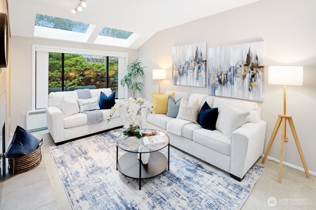 Welcome to Regency Park! This beautifully updated 2-bedroom townhome offers comfort, style, and convenience in one of Bellevue’s most desirable communities. Enjoy an open-concept living area with a cozy fireplace, a modern kitchen, and sunlit interiors. Upstairs, two ensuite bedrooms provide privacy and generous closet space, plus a private balcony for relaxing. With two dedicated parking spots, extra storage, and no rental cap, this home is a versatile opportunity. The well-managed HOA includes water, garbage, and exterior maintenance. Located near light rail, parks, shopping, and acclaimed Bellevue schools—everything you need is within reach.