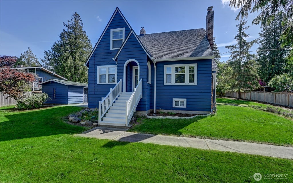 Welcome into this well-kept mid-century 5 bedroom home, set back from the main street to be its own oasis. Boasting over 2500+ sq. feet, you enter to a level that lives like a rambler! Two beds on the main living room w classic mantled fireplace and a spacious kitchen w eating space; it’s likely you’ll need not leave this floor. Downstairs you’ll find a 2nd kitchen, adding to the abundant MIL/ADU space possibilities, complete with a full bath, bonus area and large bedroom. Upstairs, two more bedrooms, tons of built in storage space and another full bathroom! Outside, this 1/2 acre oversized lot has room for RV parking, DADU potential and a classic one car garage. Too many upgrades to list, come and see! Super close to the modern needs!