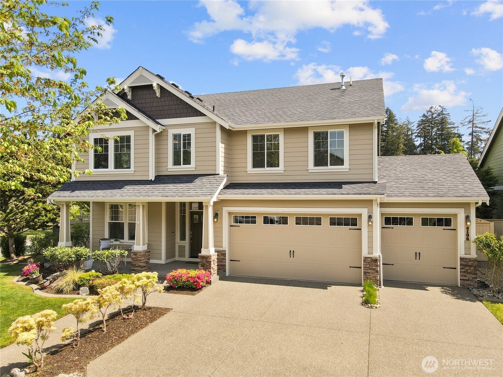 Stunning Rob Rice resale on large corner cul-de-sac lot with over $60K in recent upgrades! This impeccably maintained 4-bed + bonus room home features a 20x30 covered Trex deck with integrated spa, ideal for year-round entertaining. Inside, enjoy central A/C, a chef's kitchen with granite counters, SS appliances, and a butler's pantry with wine fridge. Open concept living with gas fireplace, built-ins, newer carpet and hardwoods. The spacious primary suite offers a spa-like bath and walk-in closet. Fresh exterior paint, 3-car garage with smart storage and beautifully maintained landscaping + garden beds complete the package. Coveted location near beaches, shopping, and a quick commute to JBLM. Truly move-in ready- this one checks every box!