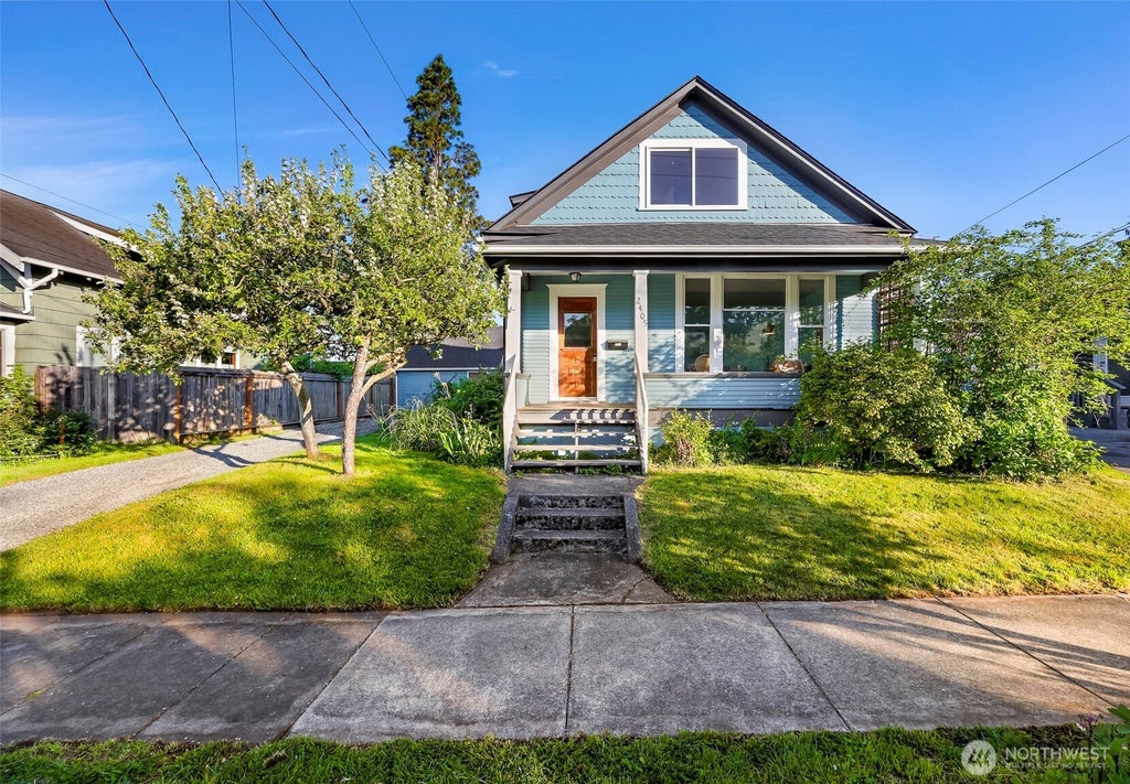 Classic Craftsman in the heart of Bellingham in the Lettered Streets neighborhood. This 1640sqft gem has maintained much of its original character, including: rosettes, fir floors, original hardware & windows, french doors and more! You will be greeted by an awesome covered front porch and when you step inside you will find a large living room and french doors leading into the dining area. A bedroom and full bath are also on the main floor, along with the perfectly functional kitchen and good-sized mudroom that leads out to the very private fenced backyard and detached garage. Upstairs find 2 more bedrooms and a ¾ bath. Unbeatable location and walkable to parks, schools, shopping, waterfront and more! Pre-inspection report available.