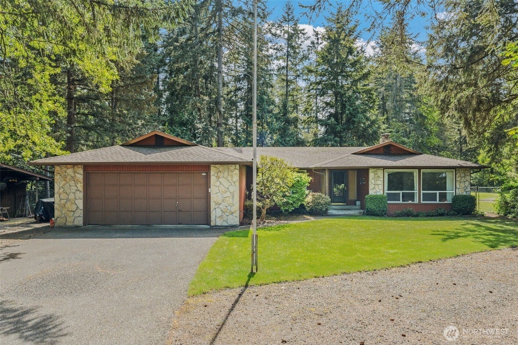OVER ONE ACRE! Unwind here! This home sits off the beaten path surrounded by flowering trees and nature! Take it all in from the serene back deck, or the hot tub if you like! There's ample parking for entertaining and gatherings, and even room for your boat/RV or toys, including a covered RV bay with enclosed storage area. Room for a garden or lawn games in the fenced backyard. The home's spacious floor plan features informal and formal spaces for dining or visiting, and three bedrooms and 1.75 baths. This home has a newer roof and has been carefully kept by the same owners since 1989! Well and septic make for super low utility costs too. Great proximity to JBLM.
