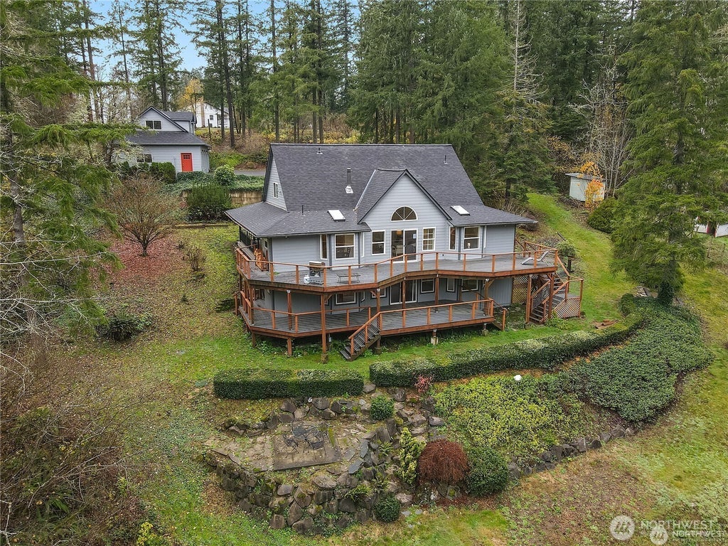 This riverfront custom home on 2.61 acres offers 350 feet of Rock Creek frontage, Breathtaking Views, and a perfect setting for Entertaining. The 4-bedroom, 3.5-bath home features a Main-Floor Primary Suite with a Spa-like Bath, heated floors, and a Clawfoot tub overlooking the forest. The spacious lower level offers Multigenerational Living Potential or rental income. The detached garage includes a 3-car bay with an oversized loft for extra storage or potential living space. This home combines luxury, comfort, and scenic beauty in a peaceful setting with granite tile countertops, vaulted ceilings, exposed beams, skylights, and a new roof.