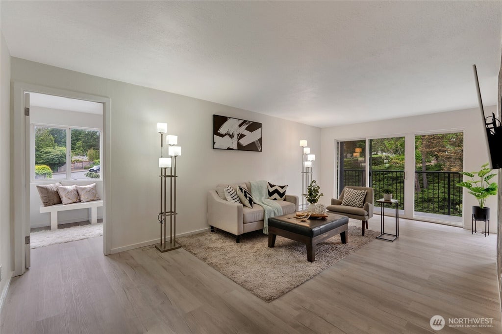 Beautifully updated 3-bedroom end-unit condo in the heart of Bellevue! This bright, open home features new flooring, fresh paint, updated lighting, and a stylishly refreshed kitchen with granite countertops. The full bathroom boasts a tile accent wall and granite vanity. Enjoy a spacious living and dining area that opens to a private balcony with a serene pool view. Comes with 2 reserved parking spots in a secured building. Pet-friendly (2 pets per unit). Ideally located near downtown Bellevue, major tech employers, the Link station, scenic trails, and top-rated schools. Amenities include a pool, clubhouse, and gym. Move-in ready and filled with natural light! Welcome home.