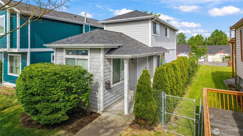 Welcome to this beautifully maintained move-in ready home! Featuring a newly remodeled kitchen with updated appliances, new flooring, and quartz countertops. The upper level boasts two spacious bedrooms with brand-new carpet and a full bathroom. Versatile main-level bedroom includes private exterior access—ideal for guests or home office. Relax on the covered deck while taking in stunning views of Mount Rainier. Fully fenced backyard offers a storage shed for bikes, tools, and gear, plus convenient rear alley parking and ample off-street parking. Unbeatable location—just a short walk to coffee shops, restaurants, parks and grocery stores. Minutes from local hospitals, UW Tacoma, and the MLK Light Rail Line, easy access to I-5 and city life.