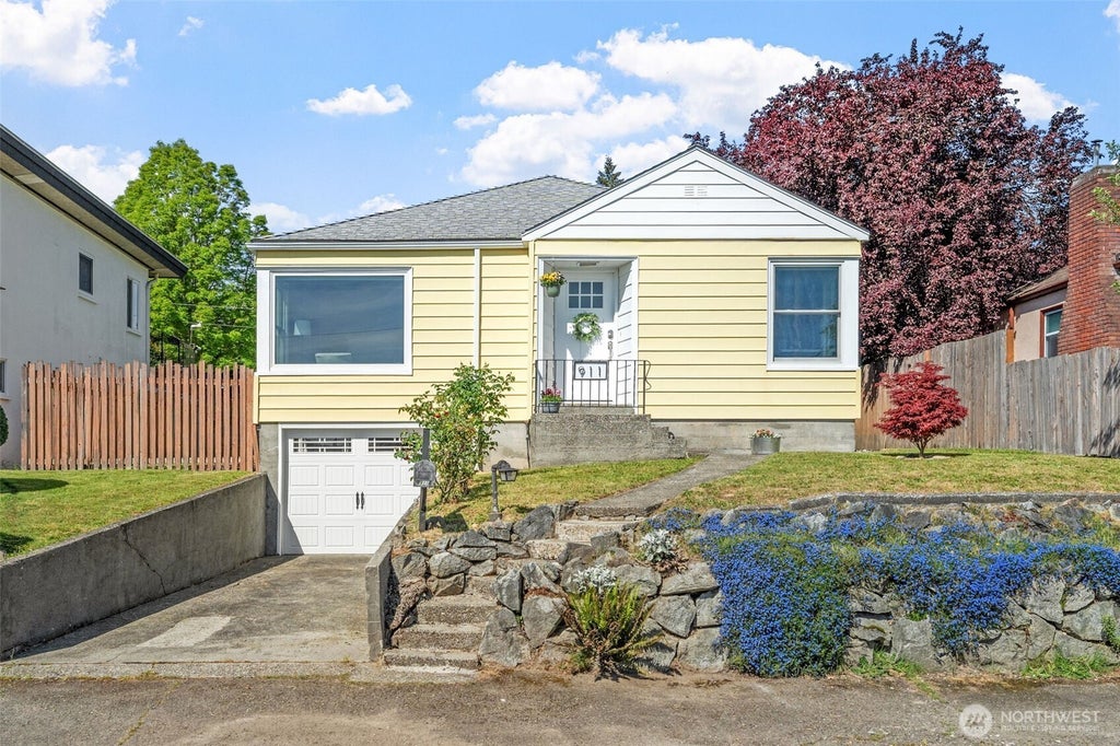Welcome to this charming, light-filled home with beautiful original hardwood floors. Kitchen fully remodeled to studs in 2023: quartz counters, stainless steel appliances, custom light fixtures. Renewal by Anderson windows installed 2024. Bathroom updated with tile shower surround and penny tile floors. Two bedrooms on main floor with cedar lined closets. Unfinished basement with garage awaits your vision. Large backyard with shed, perfect for a garden. Newly planted Japanese Maple and Dogwood trees. AC for the hot summer days. Minutes to ferry terminal, shipyard, Forest Ridge Park, and restaurants/coffee in Charleston District.