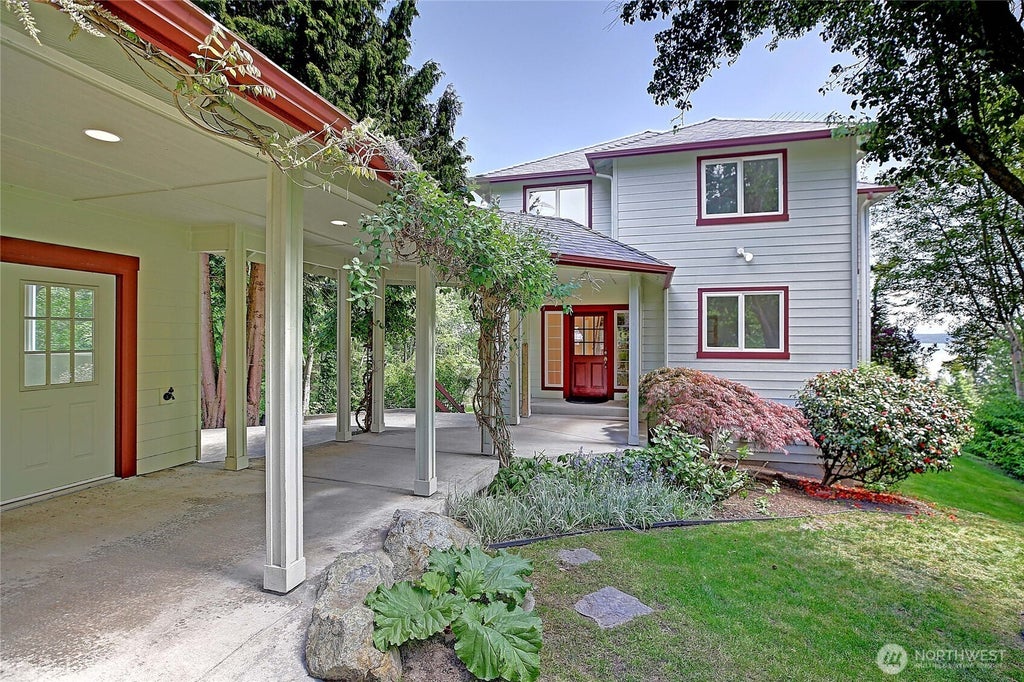 Your private oasis in the heart of Camano Island. Nestled on 5 rolling acres, this 3,600 sq ft custom-built home offers the space, quality & tranquility you’ve been searching for. Enter through wisteria-draped gates to a detached 2-car oversized garage with an attached workshop—perfect for hobbies or additional storage. Inside, the main-level Great Room boasts soaring ceilings, hardwood floors, granite countertops, & stainless steel appliances, all framed by expansive views. Upstairs, the Primary Suite & Guest Rooms offer comfort and privacy. Lower level features a finished Living Room, Bedroom, full Bathroom, and flexible bonus/storage space—ideal for multigenerational living or creative pursuits. This is more than a home—it’s a retreat!