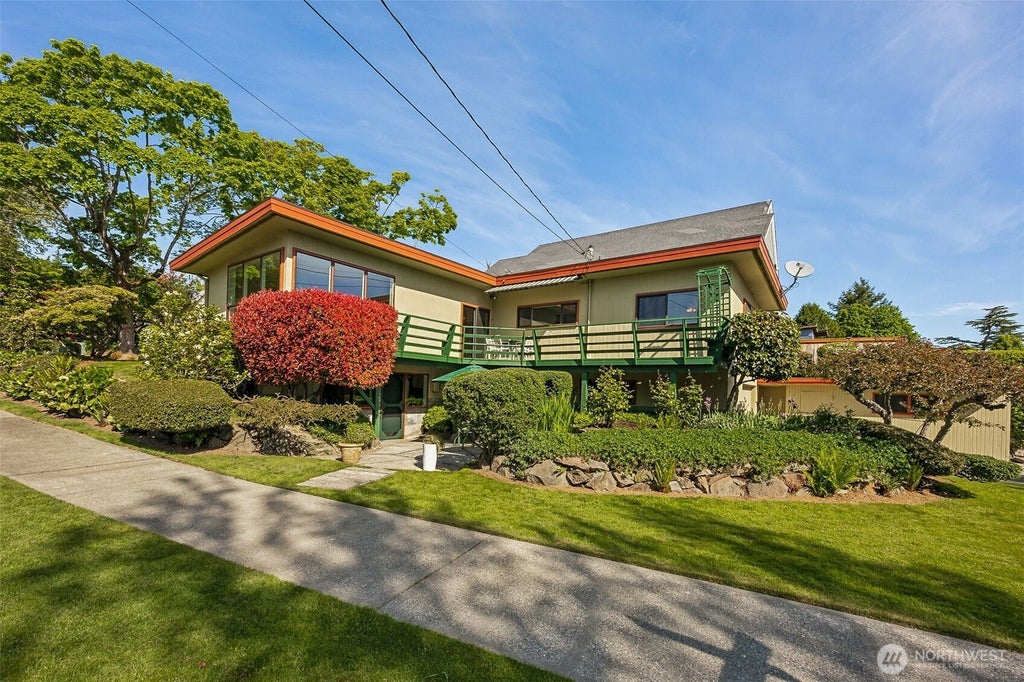 This timeless 1951 Mid-century Modern home is brimming with charm and nestled in the highly desirable Bryant neighborhood. Just a short stroll to Metropolitan Market, Burke-Gilman Trail, Mioposto, and a variety of other local favorites. Enjoy the convenience of top rated schools all within a reasonable distance, making this an ideal home for those seeking community, walkability, and classic style. This home is surrounded by mature landscaping, thoughfully designed for year-round enjoyment; offering beauty, privacy, and a seamless connection to the outdoors. Two bedrooms, 1 full, 1 3/4, and one half-bath. Two fireplaces. Laundry facilities upstairs and downstairs. One car garage, plus additional off-street parking.