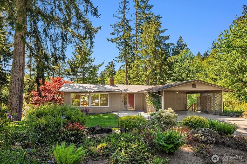Island living at its best! Ideally located just blocks from the ferry and Winslow's shops and cafés. An oasis on nearly a half-acre adjacent to the Wing Point North Greenbelt. This updated 4-bedroom home offers the perfect blend of convenience, comfort & privacy. Enjoy fresh paint, new carpet, an updated kitchen with tile and new slider doors. A spacious, easy living floor plan ~ main level features a bright layout w/a deck overlooking a wooded backyard and room to roam & remodeled primary bedroom with en suite bath. Downstairs: Family room w/fireplace, wet bar, 4th bedroom, ¾ bath & storage/shop space. Metal Roof. Quiet neighborhood, GR8 Commuter locale with shopping, services nearby. Location Location Location! A great place to call home.