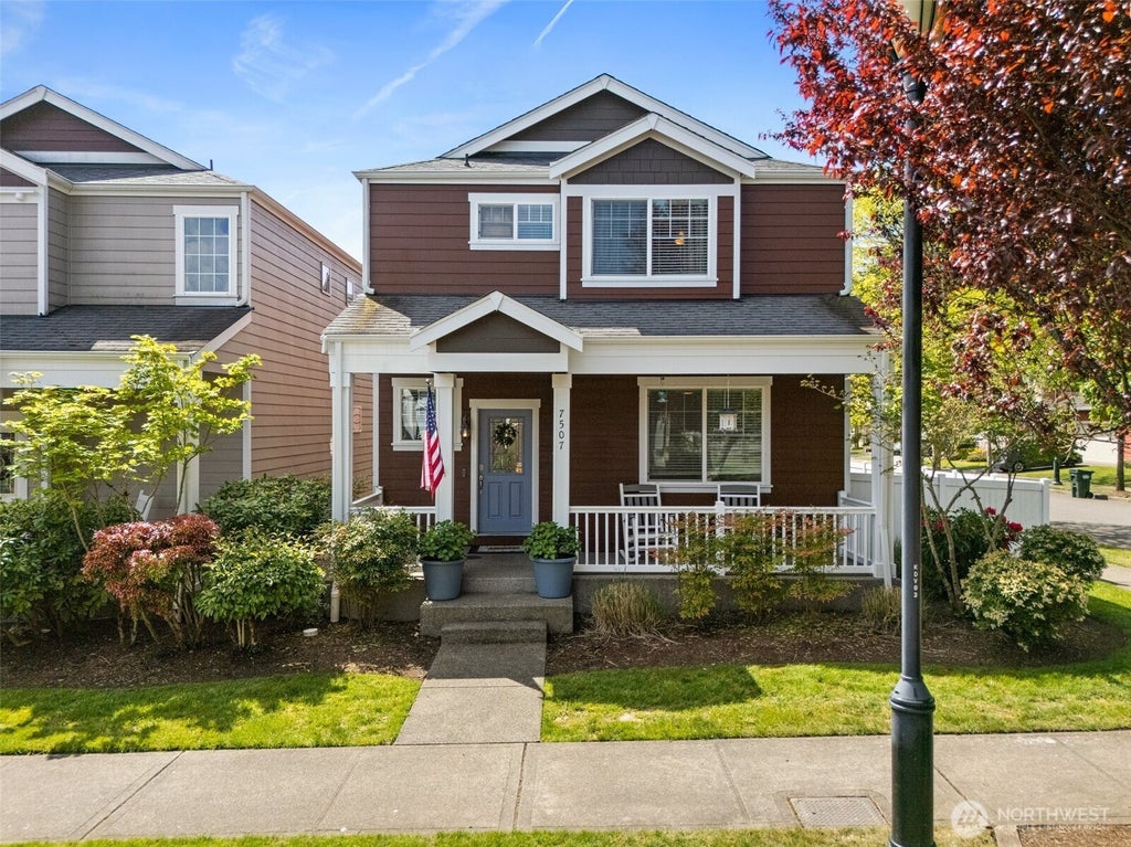 3 BED, BONUS ROOM & OFFICE with A/C! Corner lot w/large yard! Immaculate Craftsman in Lacey, this updated home on a large corner lot offers style, space & comfort. Beautiful newer wood floors throughout (NO CARPET!) & a bright, open layout w/ a spacious kitchen, oversized island, stainless steel appliances & cozy gas fireplace. French doors open to a large main-level office, perfect for working from home. Upstairs, the primary suite features a 5-piece bath & W/I closet, plus two additional bedrooms, a versatile bonus room w/French doors—ideal as a 4th bedroom & an upstairs utility room. Fully fenced, features an extended patio, berry bushes & generous yard! 2-car garage, pickleball, parks, trails, beach access & more! Easy I5/JBLM access!
