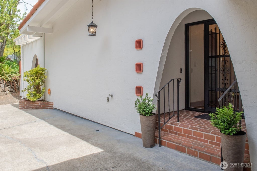 A masterful renovation brings this classic Spanish inspired home to life, staying true to its roots, warmed with rich wood beams, custom tile flooring & artisanal details that honor its architectural story. Vaulted ceilings give an airy & spacious feel to this comfortable one level home. Windows frame a gorgeous sunroom. Wood burning fireplace flanked with built-ins, step out to expansive deck. Enjoy top of the world views of Sinclair inlet, Cascade mountains & city lights. Enchanting fenced yard with covered patio, green house, hot tub & lovely established plantings. Modern amenities like heat pump with AC, on demand generator & electric car charging. Many hidden storage areas. Minutes to ferries. Homes like these are rarely available.