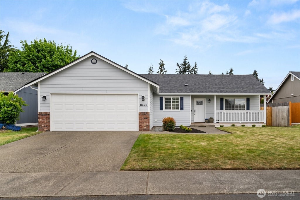 Welcome Home! Absolutely Wonderful, Impeccably Maintained Spanaway Rambler! Open and spacious floor plan, fantastic living space with gas fireplace, light and bright kitchen with island and nice eating area, 3 total bedrooms, 2 full baths, lovely primary bedroom suite with its own full bath and walk-in closet. You will love the covered front porch and the quality craftsmanship and designer touches throughout this fabulous home, Central A/C, fully fenced backyard with patio, 2 car attached garage, conveniently located to all amenities and more!