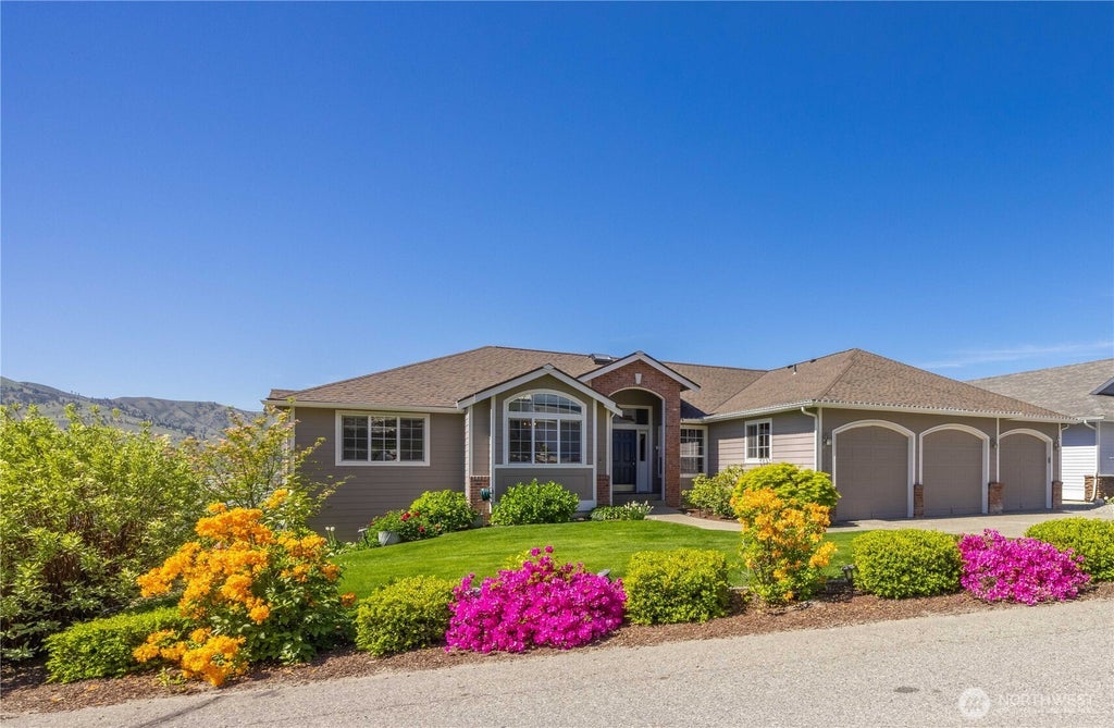 Unobstructed lake & territorial views from this spacious 5-bedroom home located above the Lake Chelan Golf Course. The main floor offers one-level living with an open concept kitchen (with soft close cabinets & Quartz countertops), dining, & living room with fireplace, plus a master suite, guest bedroom, craft room, utility room with access to the 3-car garage, den, & formal dining room. The lower level includes another master suite, kitchenette, family room with fireplace, 2 bedrooms, utility room, & storage. There’s no better way to enjoy the Lake Chelan lifestyle than from your full-length deck overlooking the lake or if you need a little shade from the covered patio on the lower level. Large lot with .43 acre.