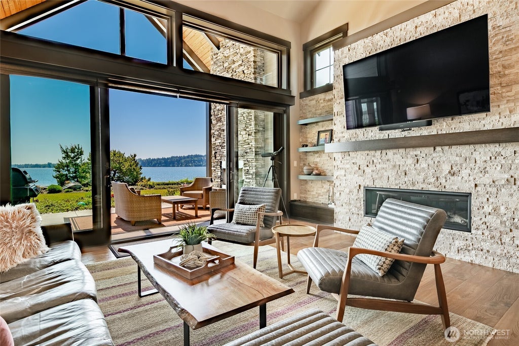 Welcome to Semiahmoo Shore, an exclusive gated community on the Semiahmoo peninsula. This stunning 3 bedroom, 3 bath waterfront home offers an authentic, one-of-a-kind lifestyle. Enjoy unobstructed views of Mt. Baker, Drayton Harbor & breathtaking sunrises from your covered outdoor patio. Inside, no detail has been overlooked. Custom interior upgrades ensure the highest level of finish, including hardwood floors, luxury appliances, tall 14' ceilings, & wrapped beams. Upper and lower-level primary suites are designed to maximize the stunning water views. Just steps from the shoreline, Semiahmoo Resort, the Marina, & miles of trails. If you've been dreaming of living by the water, this is the home you have been waiting for!